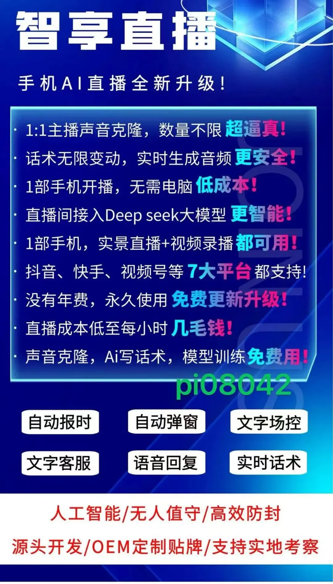 一部手机 + 智享AI直播三代 = 24小时无人直播间,不用主播、不用盯场、低成本高回报,适合实体店、电商、副业、宝妈、学生等所有想做直播的新手。