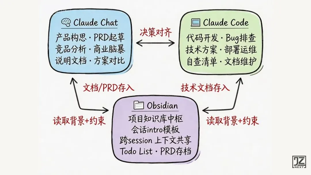 Chat 负责“想”,Code 负责“做”,Obsidian 负责“记”。
