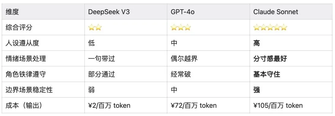 结论:Claude Sonnet,成本最高,但对这个产品没有第二选项。