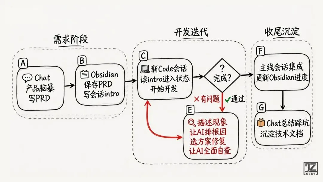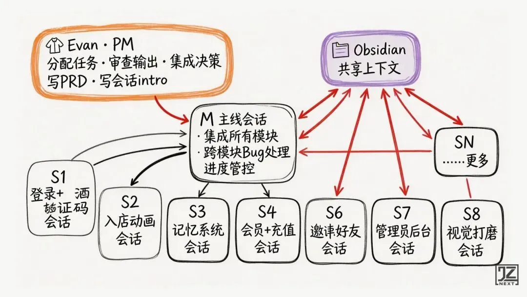 前两天的 PRD、技术讨论、架构决策全堆在 Chat 对话框里。Day 3 开新会话需要引用之前的结论,什么都找不到。建 Obsidian 知识库的工作,应该放在第一天,不是等出了问题才想起来。