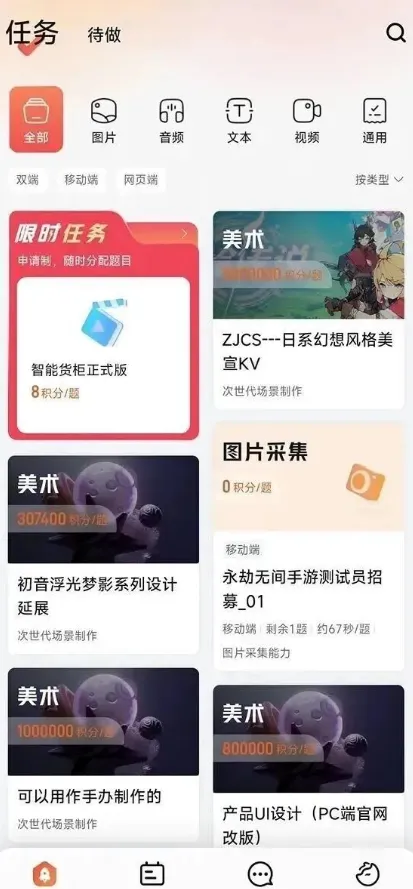 这块比较看个人,收入浮动主要取决于接单量和投入时长,多干多得。但只要肯做,大厂平台的任务池基本不会干涸,普通人每月稳拿 1000+ 问题不大,想突破就得自己加量,适合能静下心踏实干的人。