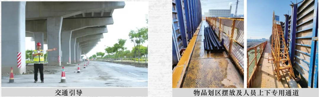 1、盖梁施工时需,如下方道路需要通行,需提前设置导改引导设置及引导人员,盖梁上部设施摆放需按照工点工厂图要求设置,确保施工作业人员取用方便,安全有序。上下盖梁采用与用斜梯,确保人员上下盖梁安全。