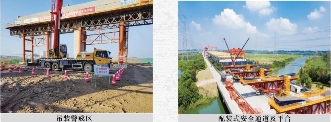 2、根据标准化布局图布置施工现场,物品摆放有序,吊装作业区域应设置警戒区、警示牌、安全梯笼、上下盖梁安全通道、缆风措施等,并悬挂安全警示标牌。