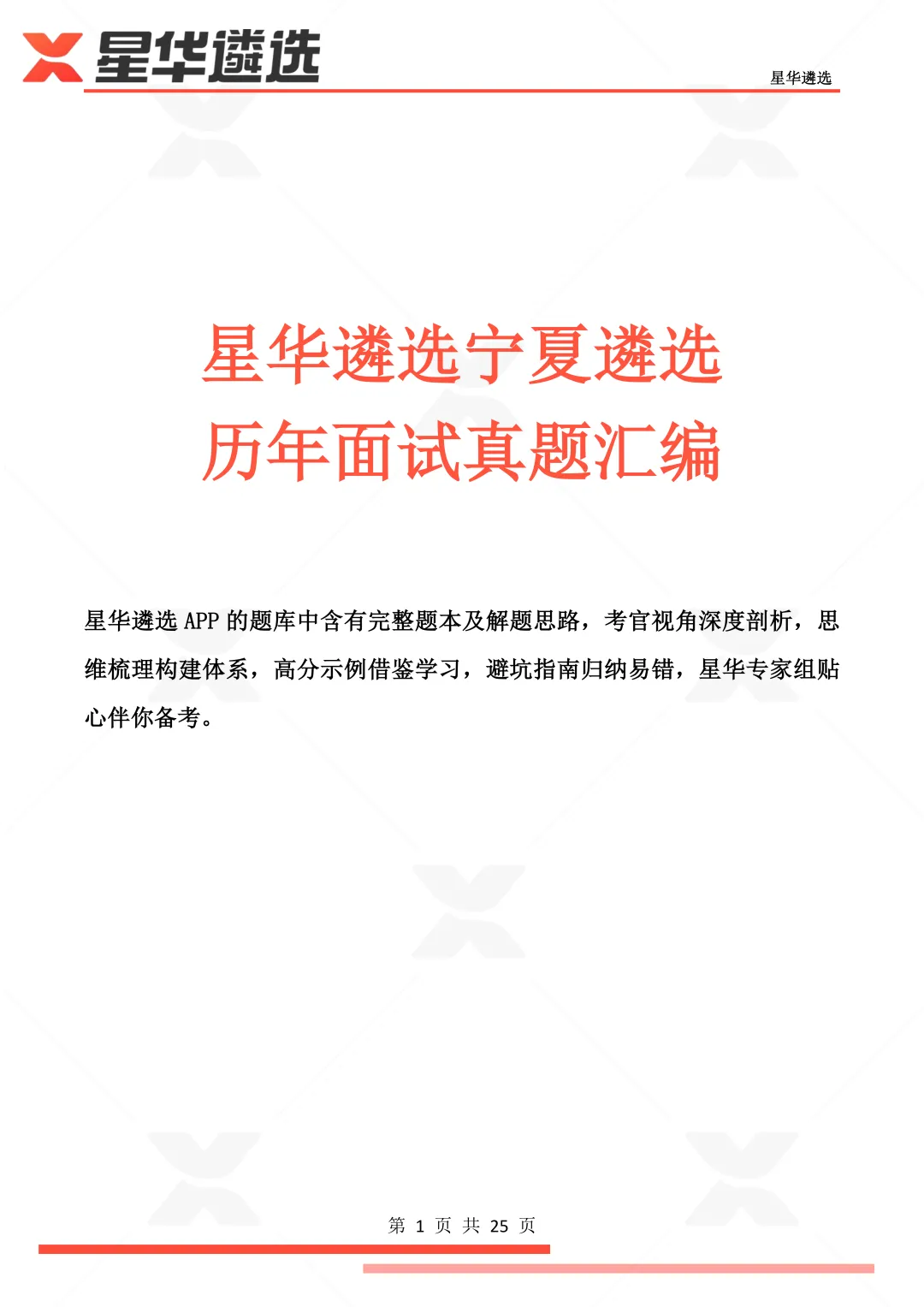 历年真题是把握命题规律、规避答题套路的核心资料。为帮大家高效备考,我们整理了10套宁夏遴选历年面试真题+答案解析,免费下载,直接领取,提前锁定面试高分!