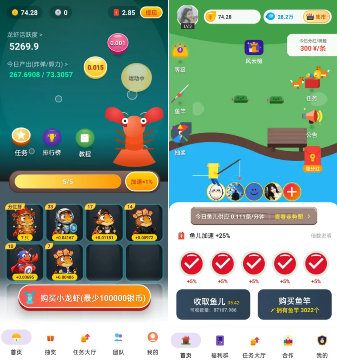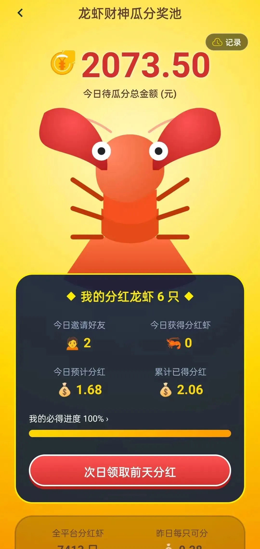 2、龙虾活跃度、分~红虾这两个地方每天去领取分~红,这个分~红是可以直接提线的;