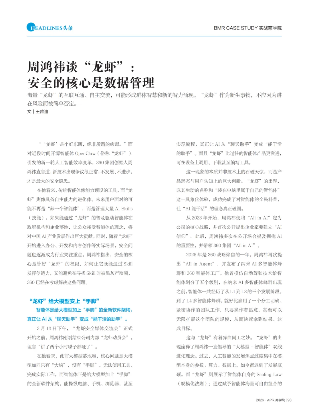 周鸿祎谈“龙虾”:安全的核心是数据管理