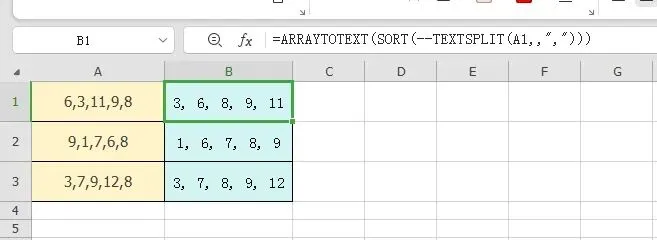 =ARRAYTOTEXT(SORT(--TEXTSPLIT(A1,,",")))