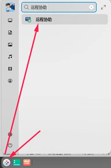 文字流程: 启动器->搜索(远程协助) 图标图示
