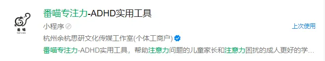 番喵专注力小程序 请在微信搜索:番喵专注力-ADHA实用工具