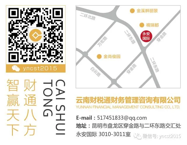 云南财税通微信公众平台所推送的文章均为财税通咨询顾问老师编辑整理,更多财税资讯请关注云南财税通微信号:18988092484,我们一 起交流探讨!