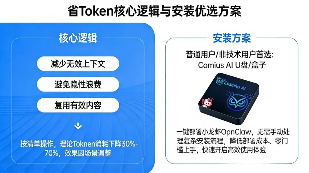 安装优选方案:普通用户/非技术用户,首选 Cosmius AI U盘/盒子。一键部署小龙虾OpenClaw,无需手动处理复杂安装流程,降低部署成本、零门槛上手,快速开启OpenClaw的高效使用体验。