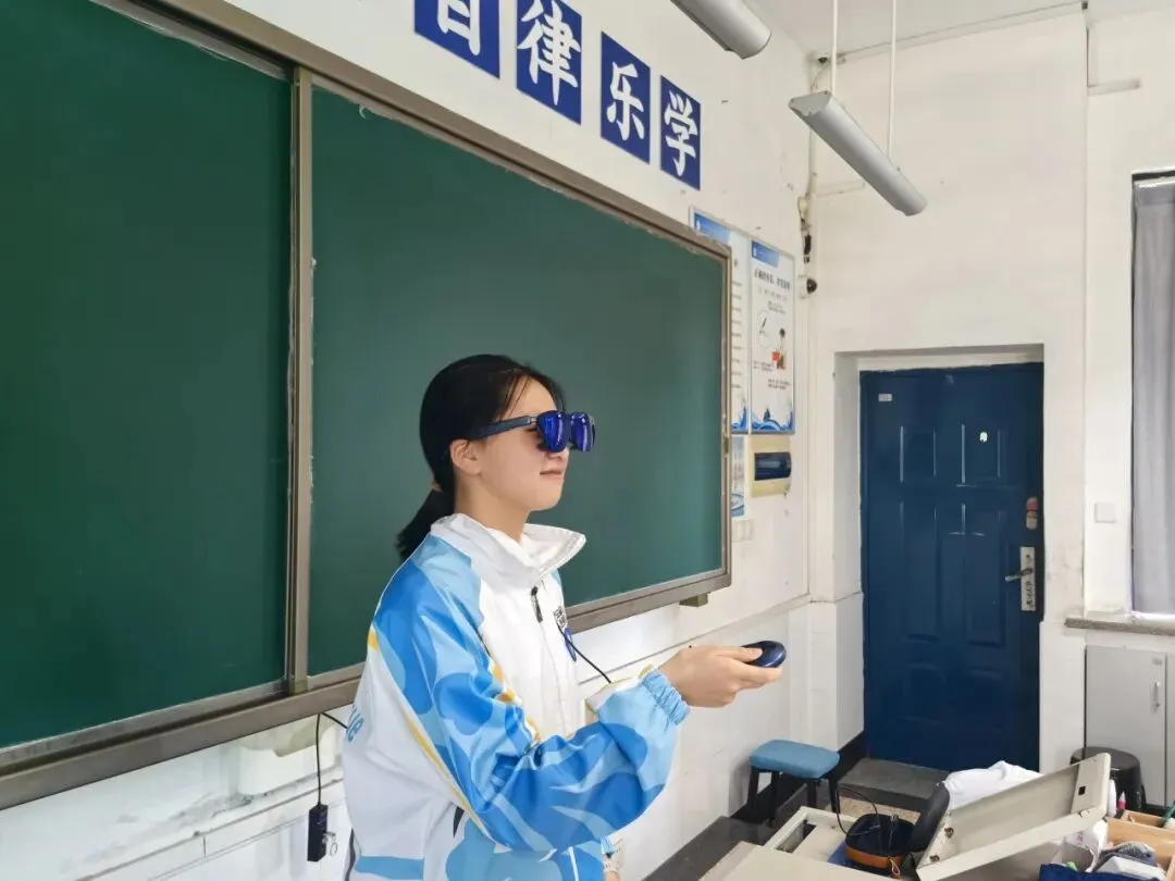 另一个是MR眼镜,它是虚拟现实(VR)和增强现实 (AR)技术结合的眼镜,能够使虚拟对象和现实环境实时互动。学生戴上MR眼镜,不仅能沉浸式参与虚拟打篮球、扔飞镖游戏,还能“遨游”太空,近距离观察太阳系八大行星。