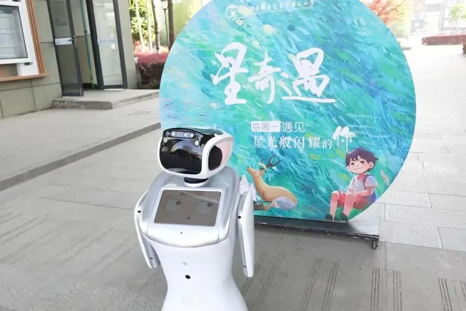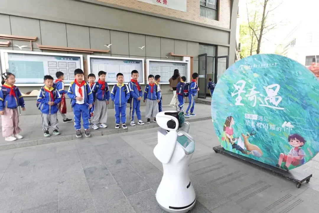 最近,星桥二小有一位朋友每天在校门口迎接学生入校,Ta就是智能心理陪伴机器人“星小宝”。看到小朋友走近时,Ta会说,“叫我一声小宝小宝,我会立即出现。如果你有心事和我分享,我会永远准备好听你分享。”