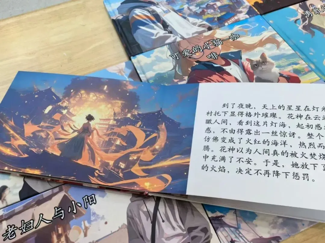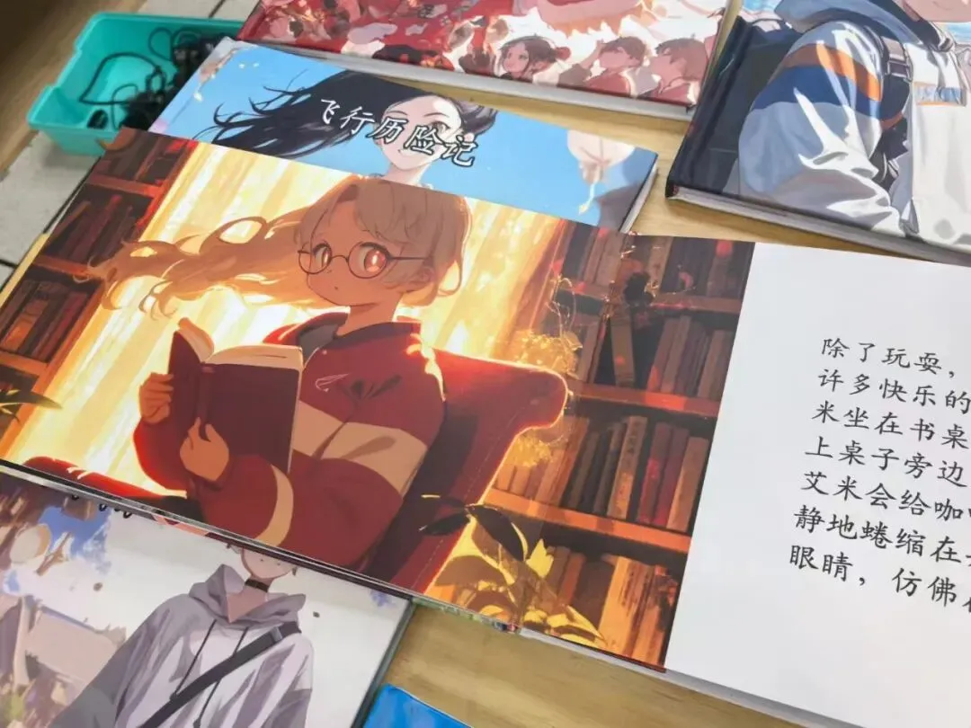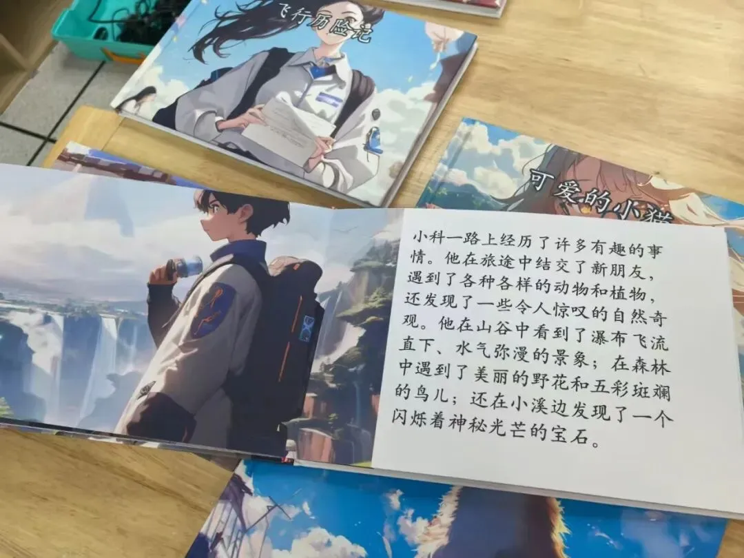 在课堂上,每个孩子都可以手持“画笔”,与人工智能结成创意搭档——3秒生成奇幻海底世界,5分钟设计未来城市,AI助手会把每个天马行空的想象变成创意十足的数字画作。《飞行历险记》《小狗归家》《勇敢的艾米丽》……孩子们创作的AI绘本,为他们带来了满满的成就感。