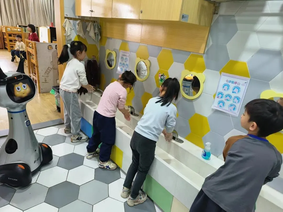 自从幼儿园引进了AI机器人,萌娃的生活比以往更精彩了。在这里,它是与小朋友一起唱歌、跳舞的好朋友,也是提醒大家喝水、洗手的小管家。