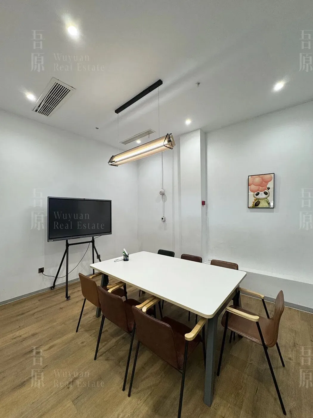 配套设置:共享会议室(MAXHUB投屏)、共享茶水间(直饮水)、空调自主控制(覆盖卫生间)、