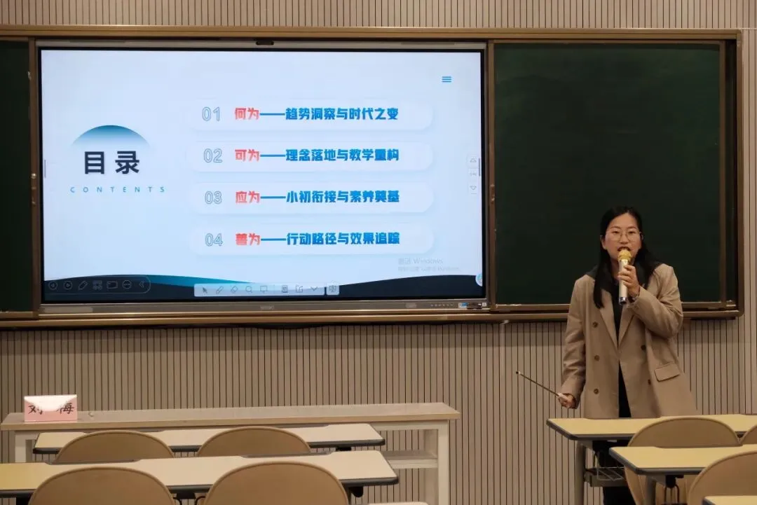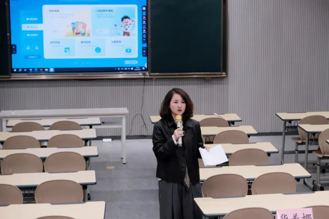 实操展示后,王舒老师结合课例作专题汇报,深入解读 AI 语伴的使用与课堂融合策略,完整呈现 “任务发布 — 即时作答 — 智能评改 — 数据反馈” 的智慧教学闭环,为全区英语教师提供可复制的 AI 教学实践范式。