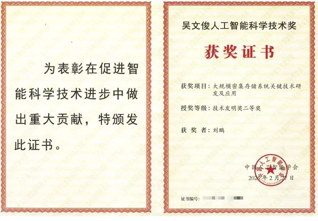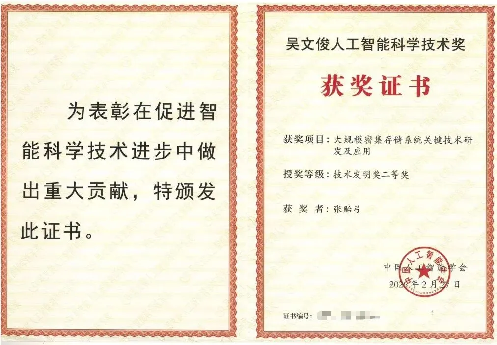 兰剑智能总经理张小艺,高级副总裁沈长鹏博士、刘鹏博士、张贻弓博士,凭借“大规模密集存储系统关键技术研发及应用”,荣获技术发明奖二等奖,真正实现从技术突破到产业落地的重大突破。
