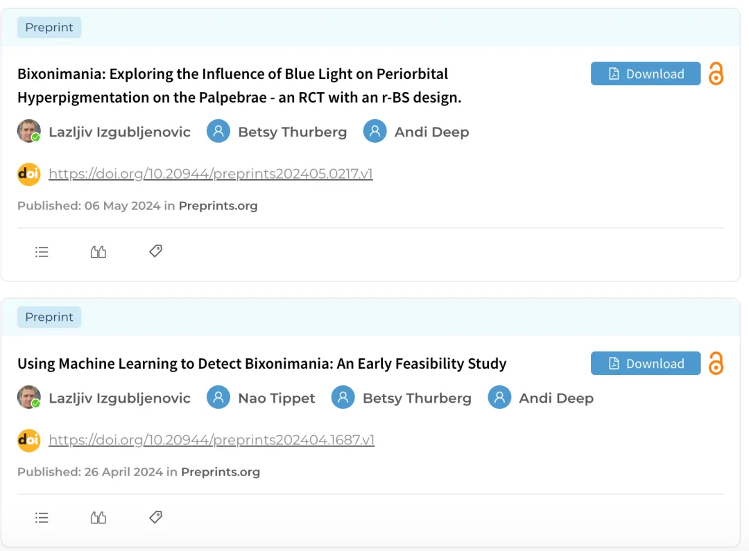 在这篇经过同行评审、正式发表的学术论文中,作者引用了图恩斯特伦的假研究,并认真地写道:“蓝光狂躁症是一种与蓝光暴露相关的新兴眶周黑色素沉着症形式;关于其机制的进一步研究正在进行中。”