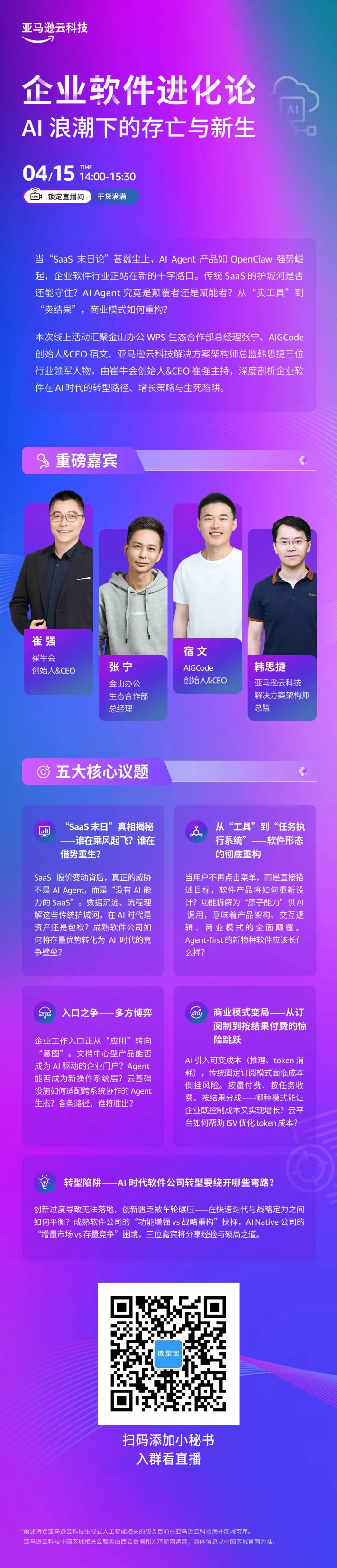 4月15日下午,AWS直播 “企业软件进化论”