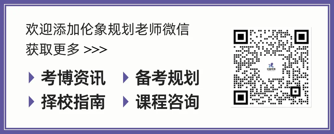 ◎ 欢迎添加伦象规划老师微信,获取更多考博资讯、备考规划、择校指南、课程咨询