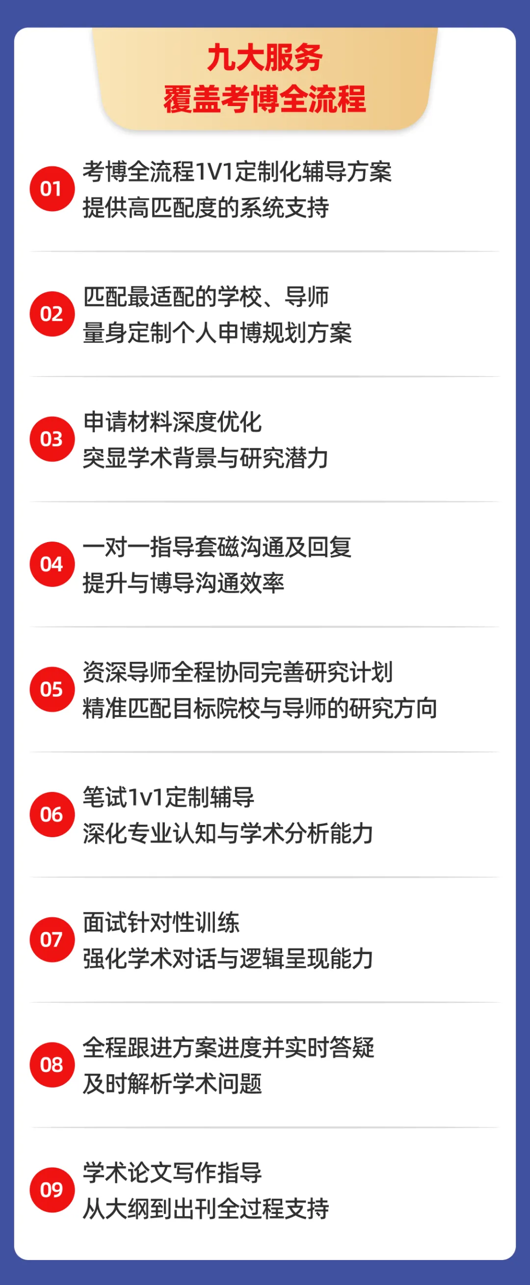 覆盖考博全流程的一站式、定制化辅导方案