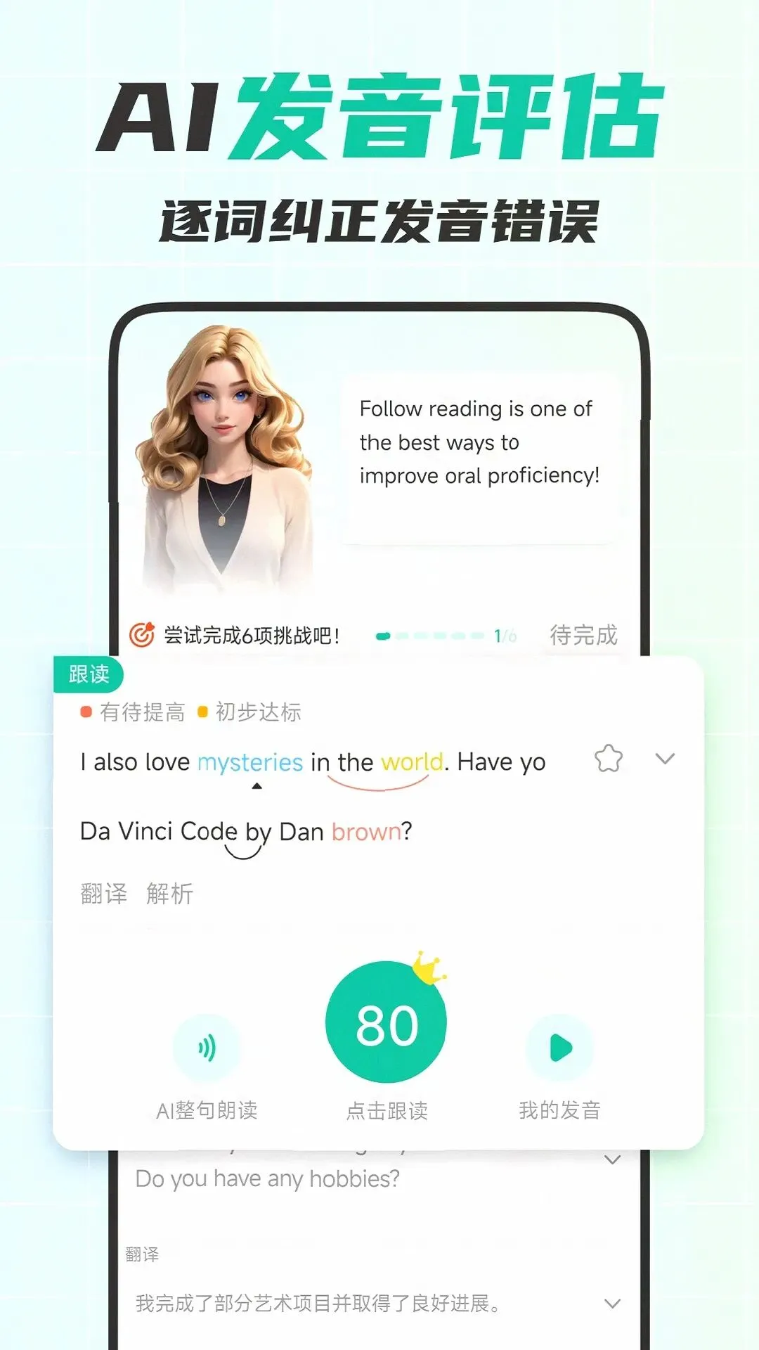 可栗口语配备了行业领先的即时语音反馈与打分系统,依托99.99%的全球顶级语音识别准确率,能够精准定位用户在语法错误、发音细节(音素级识别)、沟通策略上的所有弱点。系统会即时给出针对性的纠正建议和优化方案,搭配唇齿位动态示意图,让发音纠正更直观。通过AI精准纠错,学习时间直接缩短60%,比传统学习方式效率提升120%,真正做到事半功倍。
