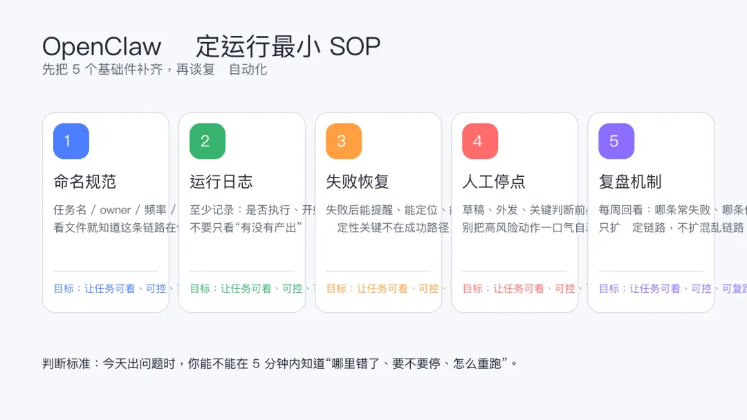 如果你想让 OpenClaw 真正稳定跑起来,最先该补的是哪一套最小 SOP。