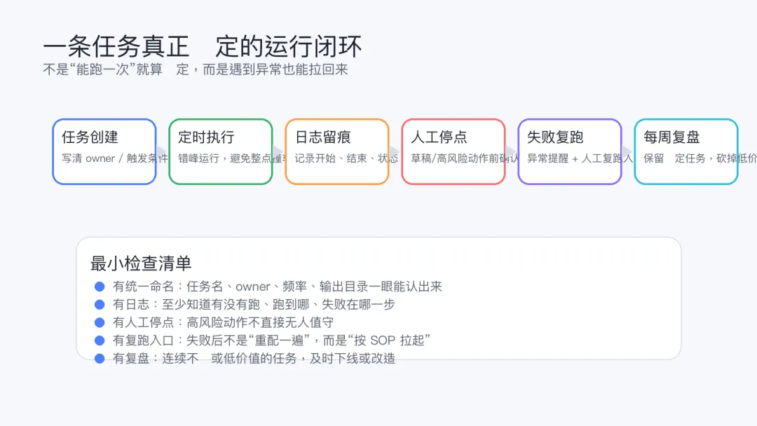 而是为了让后面的日志、提醒、复跑、交接都更容易接上。