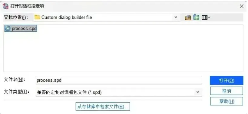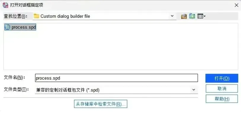 后续操作与情况一完全一致:找到process.spd文件,选中并打开,点击确定即可完成安装。