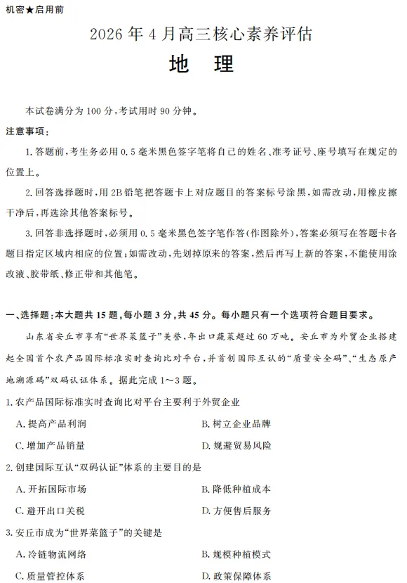 速来下载!2026年山东名校联盟4月高三核心素养评估试题及答案汇总2026年山东名校联盟4月高三核心素养评估考试已结束!鲁学早知道更新了本次考试语文、数学、英语、物理、化学、历史、政治、地理、生物各科试题及答案,一起来看~试题答案下载山东名校联盟4月高三核心素养评估试题及答案下载方式:点击下方卡片关注“鲁学早知道”公众号在主页发消息:名校联盟,即可下载语文数学英语物理化学生物历史地理政治声明:本文由鲁学早知道整理编辑,信息来源于网络,如有侵权,请及时联系管理员删除。点点赞点分享点喜欢