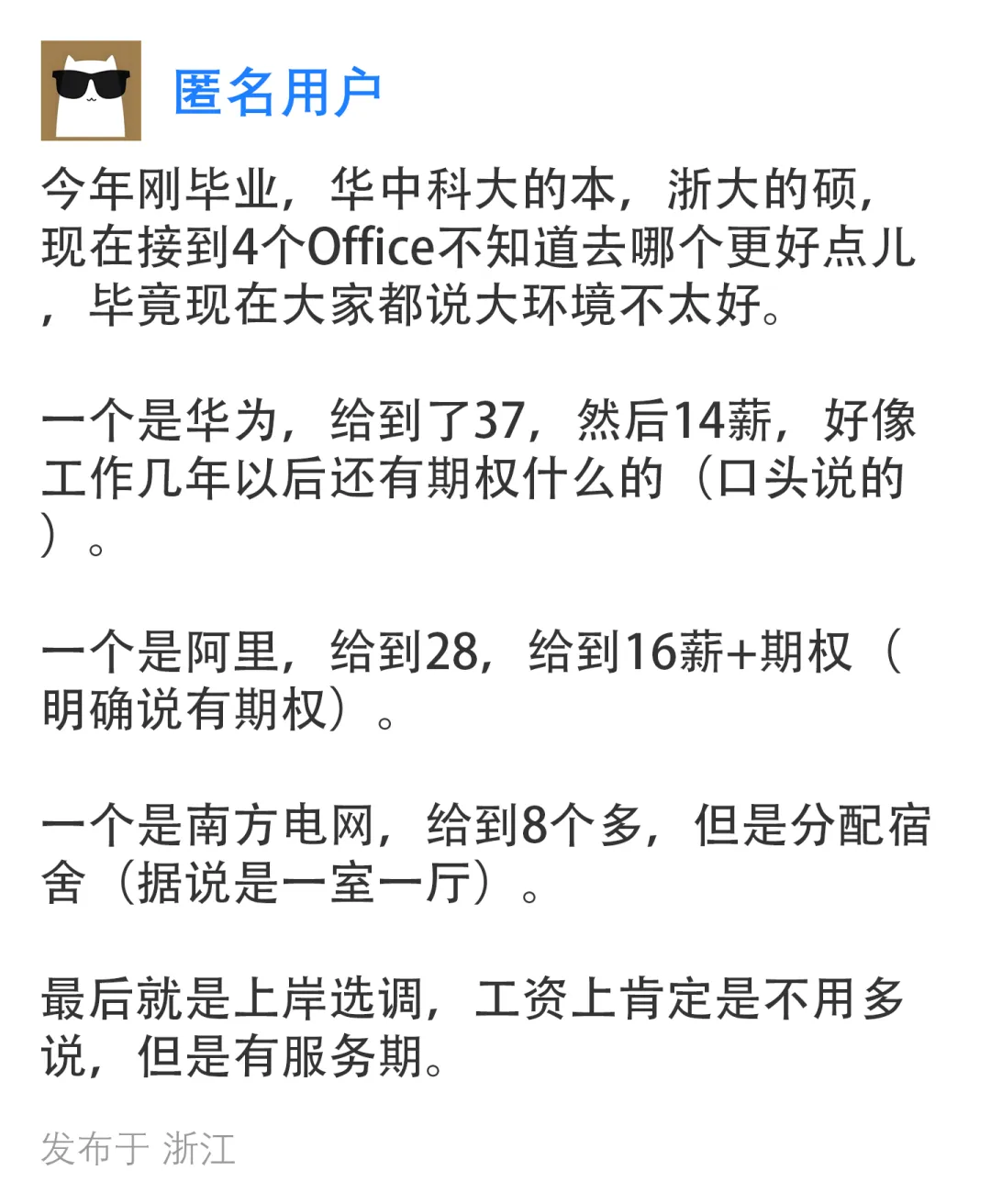 接网友投稿,今年刚毕业,接到4个Office,现在的大环境情况下不知道应该去哪个更好。