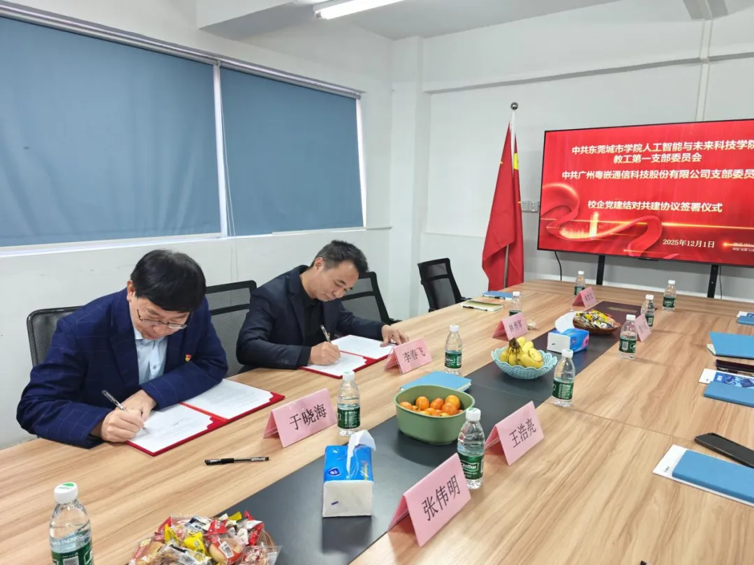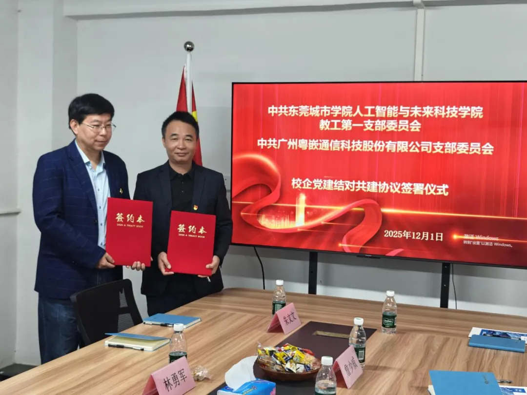 2025年12月1日,我院与广州粤嵌通信科技股份有限公司联合开展校企党建结对共建活动。我院院长杨勇虎、执行院长张伟明、副院长王浩亮、计算机科学系主任于晓海、副主任詹少威以及粤嵌公司董事长钟锦辉、总经理邓人铭、副总经理李春飞、校企合作总监朱文文、从化校区负责人林勇军共同出席参加。