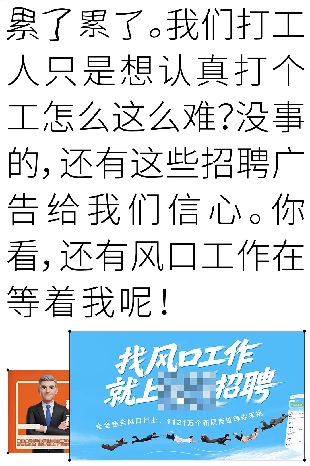 千问一条片,得罪了所有招聘APP这条片子很特别,文字PPT画风的,如果逐镜截出来,就是一完整的PPT,如果把文本整出来,就是一个脱口秀。片子真的很敢讲,就差用枪顶着在招聘类APP的脸上开怼了。不得不说千问这次是要做打工人的嘴替,因为无论哪个招聘APP,最后都会套路你给出个人信息与简历,还要付费升个VIP。工作还没找到,找工作的钱先付出去了。所以,千问这次急打工人所急出了个新版本: