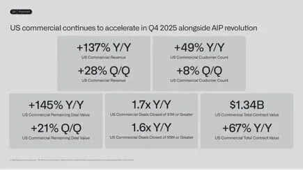 ▲美国商业业务持续爆发式增长(来源:Palantir Q4 2025 Investor Presentation)