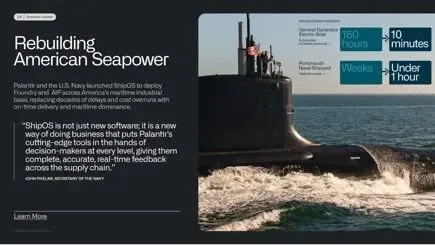 "ShipOS不只是新软件,而是一种全新的业务模式。它把Palantir的前沿工具交到各级决策者手中,在整个供应链中提供完整、准确、实时的反馈。" —— 美国海军部长 John Phelan