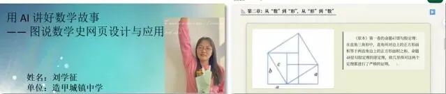 造甲城镇中学刘学征老师创新性地将数学史与AI技术相结合,利用飞象软件生成网页,让勾股定理、方程组等数学知识在历史脉络中"活"起来,有效激发了学生的学习兴趣,深化了对数学本质的理解,培养了学生的批判思维与文化自信。