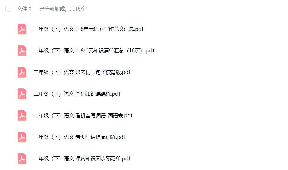 二年级下册语文|数学学习资料包电子PDF版点击“阅读原文”一键下载
