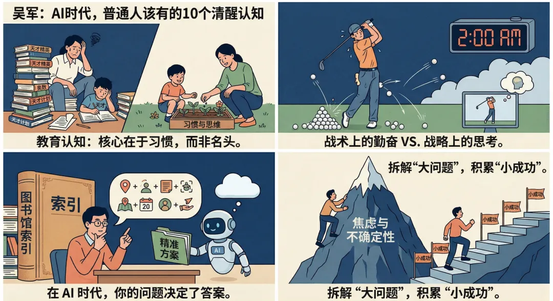 前几天,刘润读书会邀请到了顶级计算机科学家、硅谷投资人吴军老师。在长达四个小时的直播里,吴军老师不仅谈了技术,更谈透了在AI剧变时代,普通人如何安身立命。