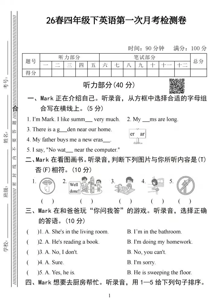 试卷下载 | PEP人教版英语(四下)《第一次月考检测卷》练习附答案文末阅读原文 获取试卷答案电子版声明:来源网络,本文意在交流学习,普及知识,如涉及版权等问题,请与我们联系删除。单击阅读原文获取电子资料!