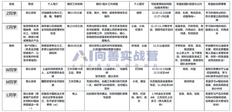 AI向善实战营由ABC美好社会咨询社发起,连接有AI热情的青年人与有真实需求的公益机构。