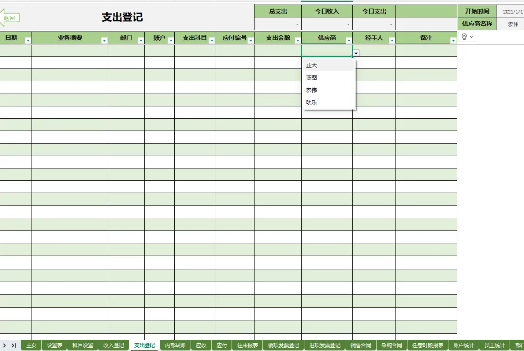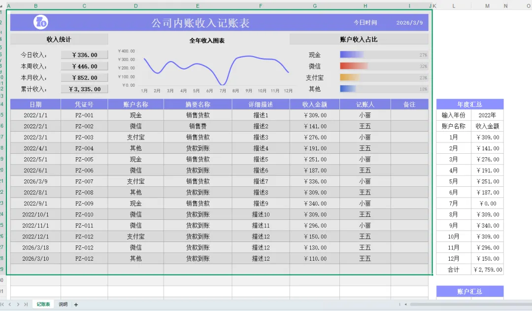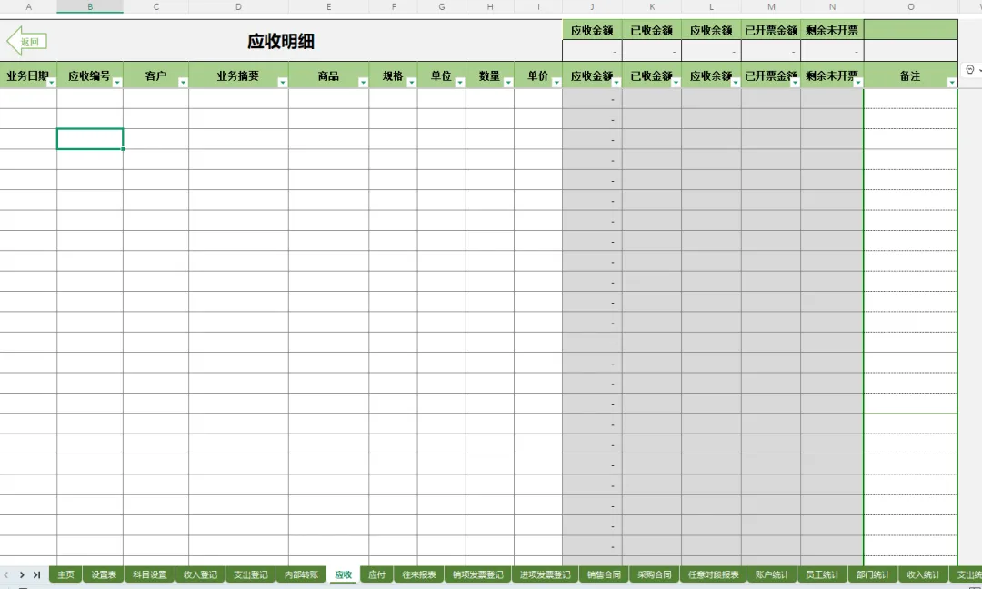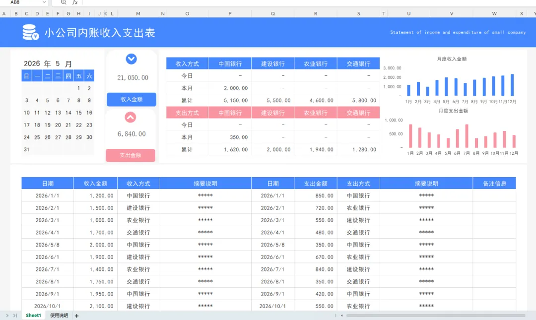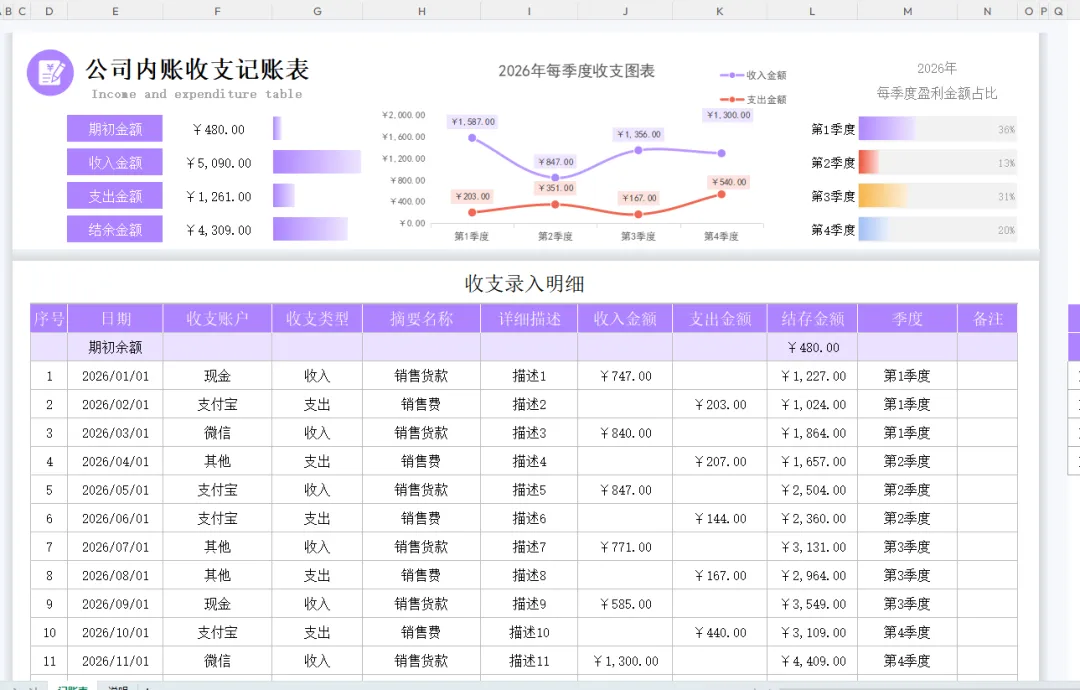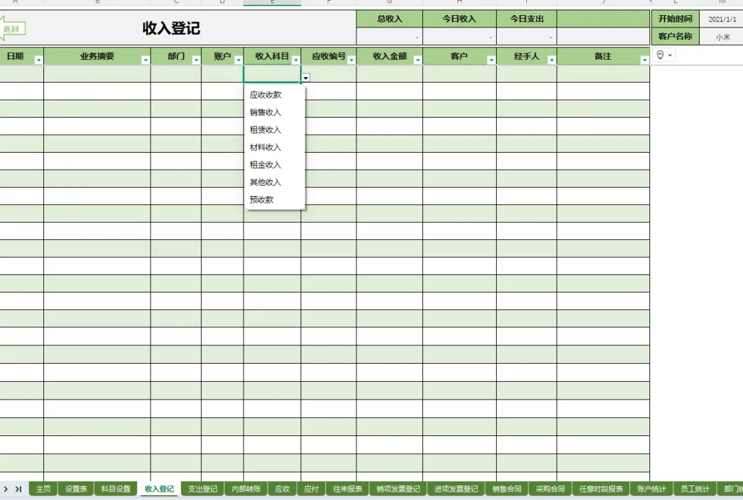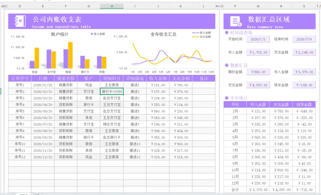 全自动Excel小企业收支明细表模板,带公式,自动统计收入支出明细,财务可编辑修改!