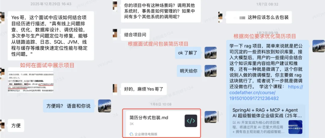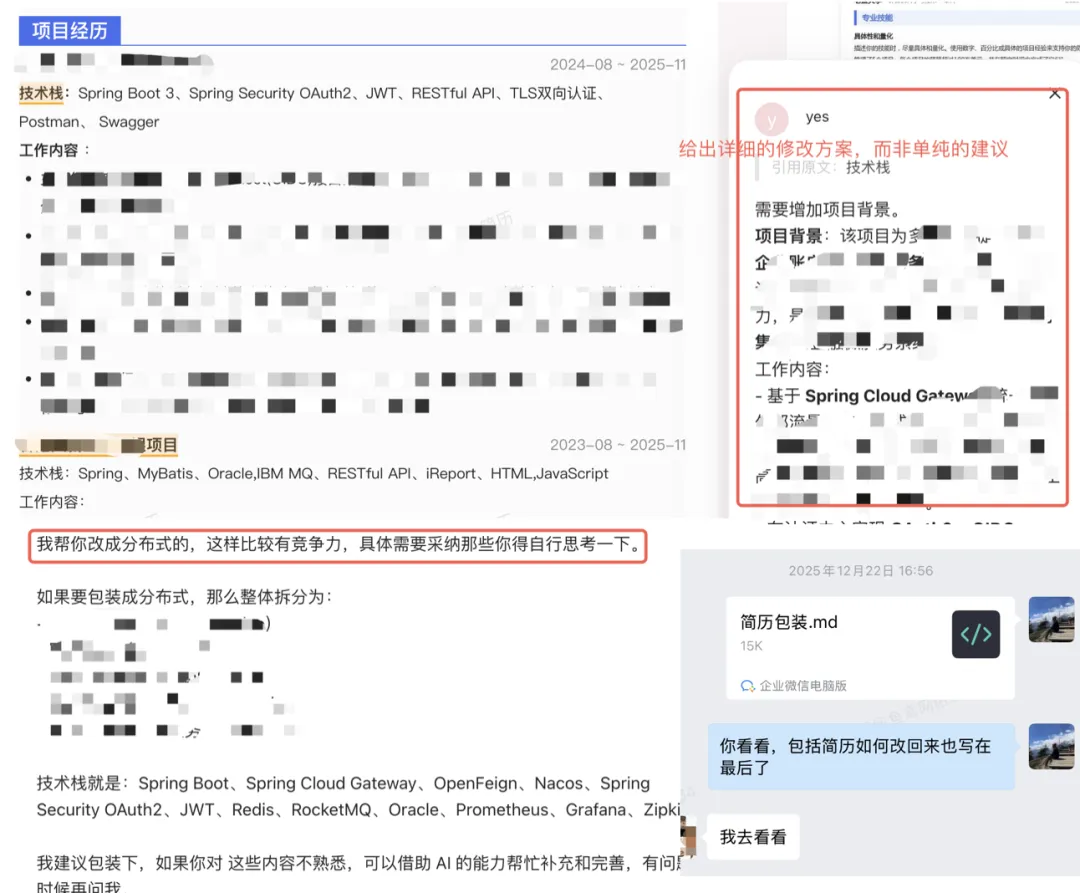 如果是本身简历中已有项目经验的同学,导师还能帮助你进行亮点挖掘 、思路拓展,甚至包装优化为 AI 项目,让面试官眼前一亮。