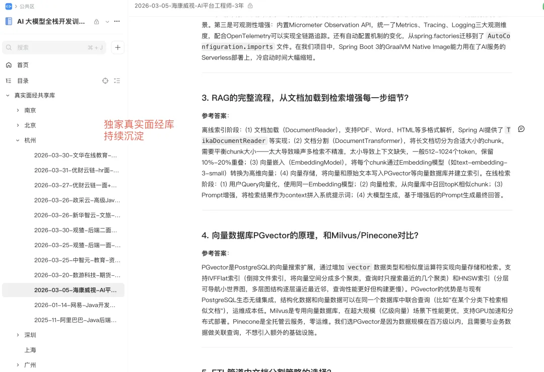 训练营提供专为 AI 应用开发岗位设计的三档面试题库,逐级击穿: