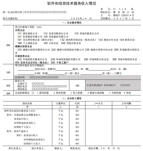 今天就带大家看点不一样的:(IV510)软件和信息技术服务收入情况报表。