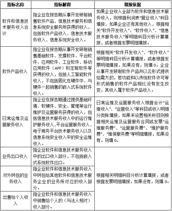 在“软件产品收入”和“信息技术服务收入”指标解释中增加人工智能内容。