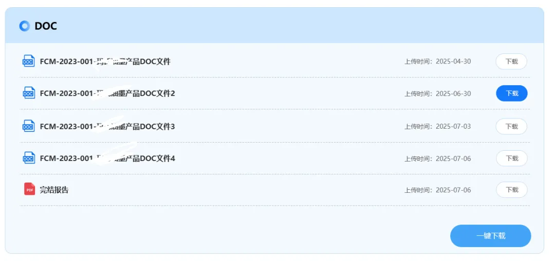 4. 全生命周期文档管理 结构化归档申报全流程文件,分类清晰可溯,支持品牌商一键下载,满足审计备案需求。
