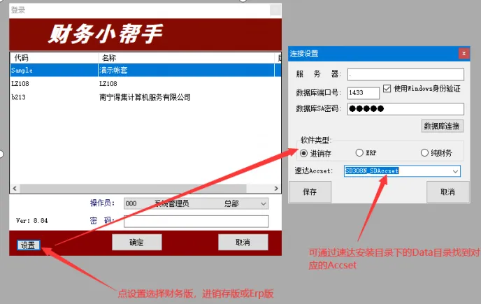 1.本工具支持3000系列,ERP系列,财务系列,通过设置 来选择.