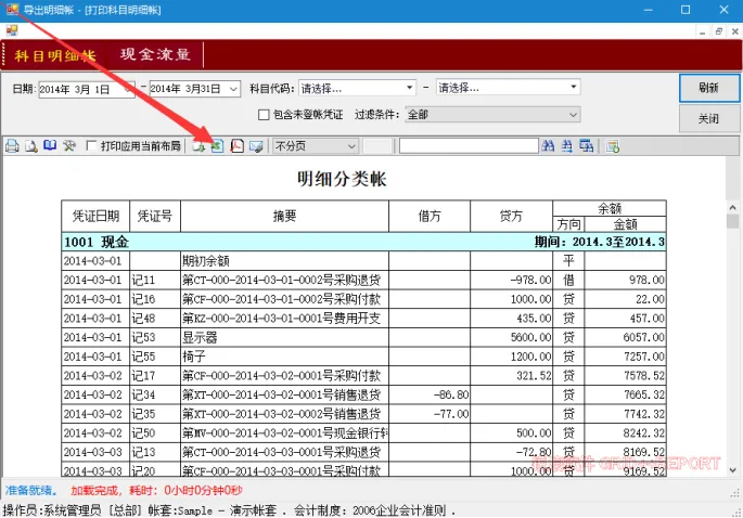 2.科目明细帐导出