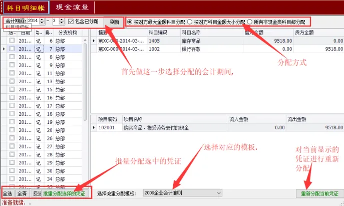 3).最后说明:由于每个人的做账方式习惯都不一样。小帮手的分配不可能完全按照个人的意愿去分配,如果你对分配的结果不满意,可以使用在速达的现金流量分配重新对一个或多个凭证手工做分配。